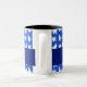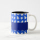 Cree su propio personalizado personalizado con apenas añaden su nombre (apellido), monograma, o las iniciales o decir el flamenco lindo del rosa del dibujo animado con fondo azul del modelo del navidad de los árboles de navidad y de los copos de nieve y raya azul. Ideas lindas del regalo del navidad del flamenco.