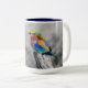 Hermosa ave de color arcoiris encaramada en un trozo. El fondo blanco y negro contrasta con las plumas de colores.