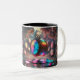 Esta taza de cerámica de 11 onzas de dos tonos presenta un diseño artístico cautivador inspirado en un mundo caprichoso de relojes brillantes y teacups. Los vivos colores del arcoiris y la atmósfera soñadora y etérea del diseño del Fiesta del té Rainbow Time hacen de esta taza una pieza destacada para quien aprecie el arte surrealista o fantástico. El mango negro y el interior contrastan con las obras de arte coloridas, añadiendo sofisticación al estilo general de la taza. Perfecto para disfrutar de café, té o chocolate caliente, esta taza duradera y artística le añade un toque mágico a su rutina diaria.