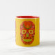 El cráneo inspirado en My Day of the Dead celebra la vida y la muerte con un collage de mis pinturas de hojas de álamos, con los rojos y amarillos de la caída.