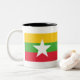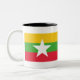 La actual bandera de Myanmar (también conocida como Birmania) fue adoptada el 21 de octubre de 2010. El diseño de la bandera tiene tres rayas horizontales de amarillo, verde y rojo con una estrella blanca de cinco puntas en el medio. Los tres colores de las franjas son para simbolizar la solidaridad, la paz y la tranquilidad, y el coraje y la firmeza, respectivamente.