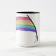 Una representación simplista y colorida de un arco iris con una figura de palo sosteniéndola como ondeando una bandera del orgullo. Transmite un sentido de colaboración y capricho mientras la figura parece estar apoyando el vibrante movimiento.