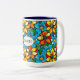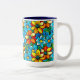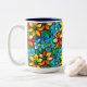 This two‑tone mug features a vibrant floral pattern bursting with color—sunny yellows, warm oranges, deep reds, and refreshing blues layered over a rich blue background. The artwork wraps around the mug in a lively, energetic composition that instantly brightens any moment. At the center, an elegant oval label with the word BLOOM adds a touch of inspiration, celebrating growth, positivity, and everyday joy. The contrasting interior and handle color enhance the design, giving the mug a modern, stylish look that feels both bold and uplifting.