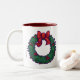 Festive Holiday Wreath mug presenta nuestra original y divertida obra de Traci Van Wagoner de una corona festiva con bayas rojas y un arco rojo Navidad. Disfrute de la temporada de vacaciones y conténtese con el clima frío con un buen libro y una taza caliente de cacao con nuestra taza de coronas feriadas festivas.