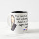 Taza de café personalizada de 444ml. ¡En cuanto a tamaño sólo puedo decir que enorme! pero es lo que esperaba así que estupendo. En el asa me entra la mano entera y no sólo tres dedos como me ocurría con las otras tazas. También comentar que es el tamaño que se ve en las series americanas, tanto para café como para infusión. En cuanto al acabado decir que es correcto, con poco tiempo de uso no puedo especificar mucho más. Pude escoger el nombre y el color pero no la tipografía, quizás esa elección pueda decidir a más gente. En términos generales y por el momento, buena opinión.