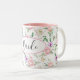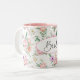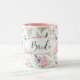 El tazón de café de novia se muestra en una bonito de rosa floral, texto de la novia. Personalizar este artículo o compra tal cual. Imagen de stock freepik.com