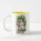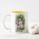 Este bonito diseño vintage incluye un conejo blanco de Pascua sentado y una cesta de huevos con hermosas flores de primavera.