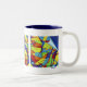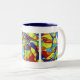 Ahora usted puede beber sus el propio el "buque de consumición multiusos." Taza de café por día, taza de té por noche y stein de la cerveza el fines de semana. ¡TGIF! Slurp su bebida seleccionada en estilo de esta taza original del arte abstracto creada cerca, artista internacionalmente desconocido, Carmen que daño. El arte intrépido, colorido usado en esta taza es un diseño basado en las pinturas al óleo tituladas "día y noche". Para ver pinturas de este artista, visite por favor: http://www.carmenhurt.com