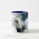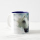 Caballo árabe blanco frente al telón de fondo de la luna y las nubes
