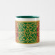 Arte de tejas rojas y verdes inspirado en la antigüedad, con un patrón de lienzo. Elige el tamaño y los colores de la taza o agrega tu propio texto.