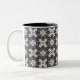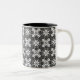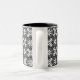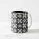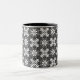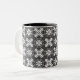 Disfruta de tu café matutino con este tazón de bebida. Creado con mi propio trabajo artístico, el diseño recuerda a antiguos caleidoscopios en un elegante esquema monocromático.