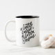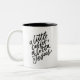 ¡La mejor manera de empezar tu día! "Un pequeño café y una lota Jesús" está escrito a mano en esta dulce taza. Reverse tiene una pequeña taza y corazón con "bendiga este desastre" escrito arriba.