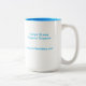Taza de café personalizada de 444ml. ¡En cuanto a tamaño sólo puedo decir que enorme! pero es lo que esperaba así que estupendo. En el asa me entra la mano entera y no sólo tres dedos como me ocurría con las otras tazas. También comentar que es el tamaño que se ve en las series americanas, tanto para café como para infusión. En cuanto al acabado decir que es correcto, con poco tiempo de uso no puedo especificar mucho más. Pude escoger el nombre y el color pero no la tipografía, quizás esa elección pueda decidir a más gente. En términos generales y por el momento, buena opinión.