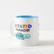 Taza de café personalizada de 444ml. ¡En cuanto a tamaño sólo puedo decir que enorme! pero es lo que esperaba así que estupendo. En el asa me entra la mano entera y no sólo tres dedos como me ocurría con las otras tazas. También comentar que es el tamaño que se ve en las series americanas, tanto para café como para infusión. En cuanto al acabado decir que es correcto, con poco tiempo de uso no puedo especificar mucho más. Pude escoger el nombre y el color pero no la tipografía, quizás esa elección pueda decidir a más gente. En términos generales y por el momento, buena opinión.