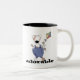 Un adorable perro manchado de blanco y marrón con el vientre regordete con el overol de denim vuela un texto en blanco y negro que dice "Adorable" en camisetas de Perro Adorable, patines, pantalones de vestir, gorras, tazas, tarjetas, pegatinas, cadenas de teclas y más.