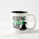 ¡Cara de reclinación de la bruja! Goce de su bebida caliente preferida con esta taza de café dos-entonada divertida de la frase de Halloween (o cualquier otro día para esa materia). Características del este diseño una fuente negra de sans serif, junto con una escritura del verde de la bruja, al lado de un gorra de la bruja. ¡Feliz Halloween!
