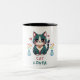 Cute kawaii gato de color verde azulado sentado entre dos jarrones de flores y el corazón a cada lado con el texto dice Cat Lover. Este es un gran regalo para los amantes de los gatos.