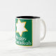 Diseño verde con una estrella de David que dice Chanukah feliz