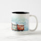 Celebrate the magical and festive holiday season with our personalized photo mug. Our vintage holiday design features a farm landscape of Christmas trees, this Christmas pattern features a farm Christmas scene with a farm, a red barn, children playing and throwing snowballs, Christmas trees and a red vintage truck