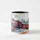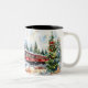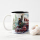 Celebrate the magical and festive holiday season with our personalized photo mug. Our vintage holiday design features a farm landscape of Christmas trees, this Christmas pattern features a farm Christmas scene with a farm, a red barn, children playing and throwing snowballs, Christmas trees and a red vintage truck