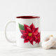 Aquí se muestra la taza de café de vacaciones con una estampación de poinsettias rojas festiva. Color de marrón dentro del Personalizar este artículo o compra tal como está. Imagen de stock