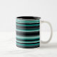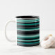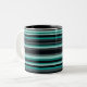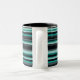 El tazón de café se muestra en una impresión a rayas de color negro y verde azulado. Personalizar este artículo o elige otro estilo de taza o compra como está.