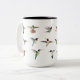 Mug de bonito con varias especies de colibríes nativas de Norteamérica sobre un fondo de crema. Las especies de colibríes representadas son los colibríes de Anna, Rufous, Costa, Allen, Ruby-throated y Black-Chinned Hummingbirds. Todas las imágenes son tomadas de las acuarelas originales por Christiane Dobbins.