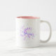 This colorful abstract neon splash coffee mug features a vibrant modern art design on a dark background.