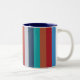 Colorful Vertical Retro Stripes Two-Tone Coffee Mug originally designed by Nisha Prabhu. A colorful vertical retro stripes two-tone coffee mug features a charming and vibrant design that combines bold, vertical stripes with a two-tone color scheme. The mug showcases lively, contrasting colors arranged in a vertical stripe pattern that adds a nostalgic, vintage feel. The two-tone finish enhances its retro appeal, with the handle and interior often contrasting or complementing the stripe colors.