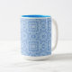 Combinación armoniosa de patrones geométricos lineales que se asemejan a un horizonte urbano tranquilo, adornado con delicadas estrellas y suaves soleadas en tonos azul pálido