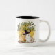 Adorable taza de Halloween con un Corgi usando un gorra de brujas, parado en una escoba, con una calabaza y hojas de otoño cayendo - todo delante de una luna llena, y las palabras Feliz Halloween en la parte superior.