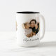 Create your own custom photo mug. This coffee cup features two of your favorite pictures in a watercolor brush stroke frame and personalized handwriting calligraphy text for any occasion. A great gift for family and friends or your own photo memory keepsake.