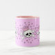 Calavera de princesa suave y huesos cruzados rodeados de estrellas en tonos rosas.