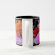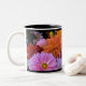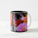 Abróchese el día con esta gloriosa taza que cuenta con una colección de flores de dalia de lirio en un colorido diseño de rosa, amarillo, blanco y malva.