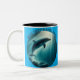 Un delfín bajo el agua con rayos de luz solar filtrándose a través del agua. Las palabras 'bucear profundo, vivir libre' están escritas encima de la imagen. Una maravillosa taza con un mensaje inspirador. Contiene contenido generativo.