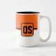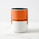 Aquí se muestra el tazón de café con un estilo de bloque de color impreso con una letra de muestra, personalizar y cambio de colores y letra o compra tal como está. Colores Negro, Naranja, Personalizar blanco este artículo o compra tal como está.