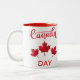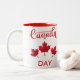 Tres hojas de arce rojo con el texto "Día de Canadá"