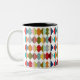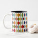 Esta taza tiene un diseño Bauhaus de diamantes superpuestos en colores retro.