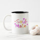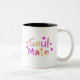 Las palabras "Soul Mate" escritas en un colorido estilo dibujado a mano. Las cartas son un poco desordenadas y desiguales, lo que le da un toque casual y personal. También hay pequeñas formas de corazón repartidas por las palabras. La imagen evoca una sensación de amor, conexión y tal vez un sentimiento infantil y juguetón.