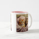Gato Mug con dos gatos manitas acurrucada juntos en una manta rosa y blanca bonito. Esto sería un gran regalo para cualquier amante del gato que conozcas. Colores y diseño brillantes. Esta es una de mis propias creaciones de IA.