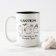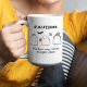 Taza moderna de Halloween con fantasmas amistosos con un murciélago y una araña en un lado. El otro lado tiene un gráfico diferente de una araña linda junto a una bebida de especias de calabaza. Texto editable en ambos lados.