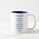 la taza del alfabeto con alfabeto remite y al revés en ella en azul marino