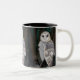 Taza Bicolor Elegancia ártica: Lechuza de nieve en los bosques