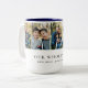 Celebrate Dad with this elegant Modern Daddy photo collage two-tone coffee mug, designed to beautifully showcase five cherished memories in a stylish, meaningful way. Featuring a clean and minimal collage layout with space for five photos, this design keeps the focus on your most heartfelt moments while maintaining a modern, refined aesthetic. The word “DADDY” is displayed across the photos in sophisticated typography, with the first letter styled in elegant calligraphy and a subtle heart detail, paired with a timeless serif font for a polished look. The phrase “our whole world” can be personalized, along with family members’ names and your family last name, making this mug truly one of a kind. Perfect for Father’s Day, birthdays, first Father’s Day, or celebrating new dads, this thoughtful keepsake blends sentiment and everyday function. Ideal for coffee, tea, or daily use, it’s a meaningful gift he’ll reach for and appreciate every day. Personalize it with your favorite photos and a heartfelt message to create a lasting memory he’ll treasure for years to come. Original design and layout by Moodthology Papery.