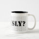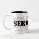 Elegante taza con la palabra "serio" tecleada por fuera.