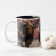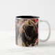 Imagen de primer plano de tres toros embistiendo de cerca y personalmente. Taza de café del encierro. Imagen de toros corriendo enfadados. Gran idea de regalo único. Tres majestuosas bestias animales en quitaos de en medio o si no. Puedes cambiar el tamaño, estilo y colores de la taza para adaptarla a tu gusto.