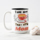 Una frase de "Mamá con té y rifle" es una expresión encantadora y llena de juego de palabras que celebra las extraordinarias cualidades de una madre. El juego de palabras combina "fabuloso" con "té", creando un mensaje encantador y desenfadado. Esta cita sugiere que a la madre a la que se hace referencia no sólo es estupenda sino que tiene un cariño especial por el té, agregando un toque personal al cumplido. Es una forma caprichosa de expresar admiración y amor por una madre que no sólo es excepcional sino que también disfruta de los placeres simples de la vida, como tomar una taza de té. Esta frase de barba es perfecta para regalarle a una madre amante del té, que le pone una sonrisa en la cara mientras disfruta de su bebida favorita.