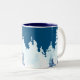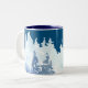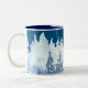 Escena De Café De Dos Tones En El Bosque De Invierno. Imagen de árboles cubiertos de nieve cerca de un río por la noche.
