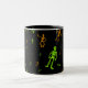 Un espeluznante diseño de tazas de café, cubierto de esqueletos verdes y naranjas - perfecto para su diversión de Halloween este año!