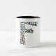 El Monograma 'F' hecho con imágenes de guijarros en todas las formas y colores, como: corazón zafiro, cojín cortado Esmeralda, diamantes marqueses y más...